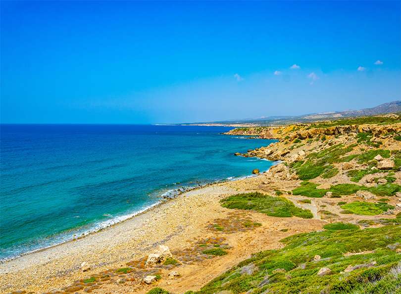 Lara Beach, located in the Akamas Peninsula, will offer you views of untouched natural beauty. This beautiful sandy beach with crystal-clear waters is also a haven for sea turtles and a true paradise if you are seeking peace in an unspoilt environment.